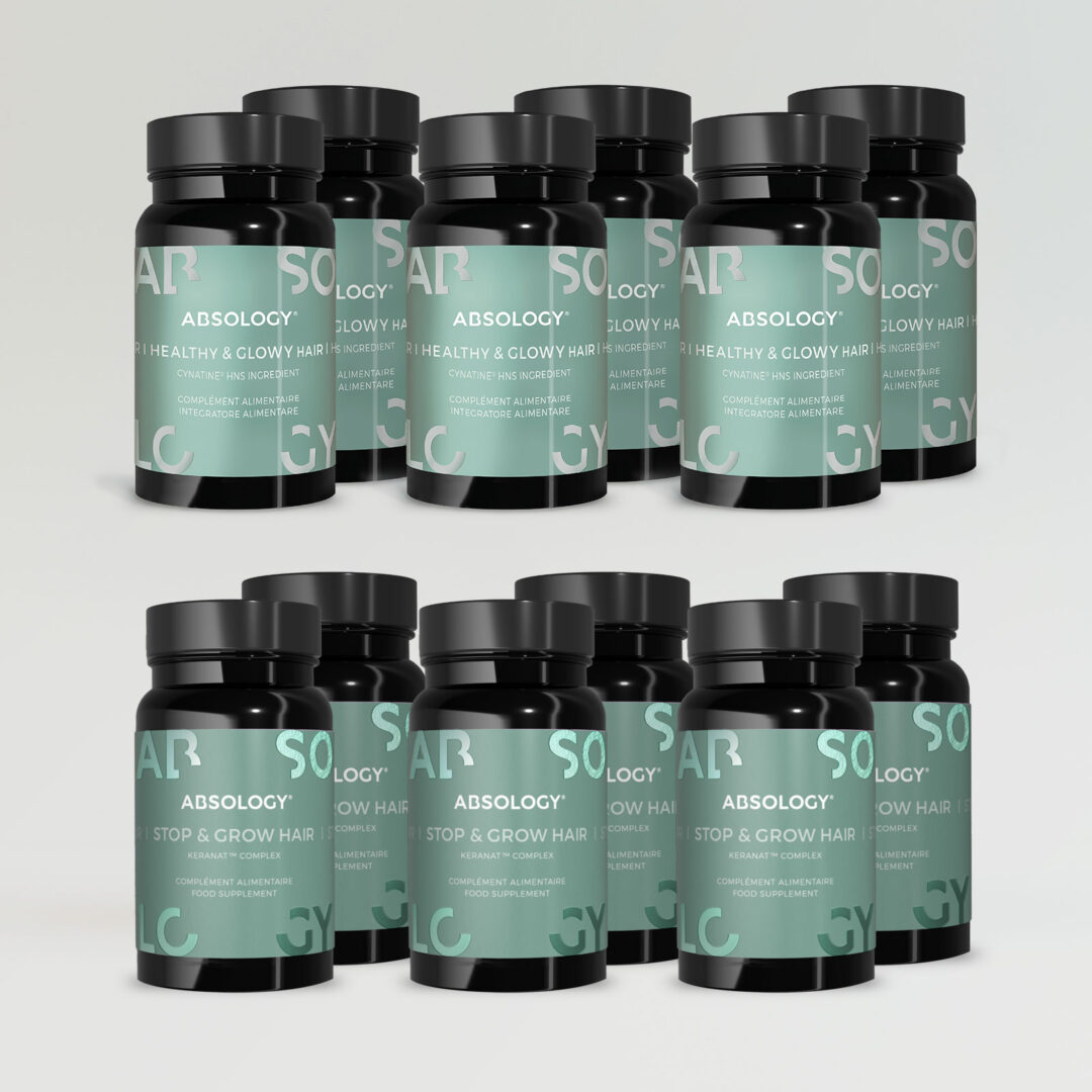 Stop & Grow Hair: 1– Kell G., et al. Complement Ther Med. 2017 Aug; 33:58-64 – randomized, double-blind, placebo-controlled study (N=128) affron® intake of 28mg/day for 4 weeks ; 2 – Le magnésium et la Vit. B6 contribuent au fonctionnement normal du système nerveux ; 3 – La Vit. B5 contribue à des performances intellectuelles normales ; 4 – Le magnésium, la Vit. B5 et la Vit. B6 contribuent à réduire la fatigue
